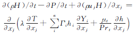 式中,P為絕對壓力;T為絕對溫度;h為物質的焓;λ為熱傳導系數(shù);Prt為普朗特數(shù)。